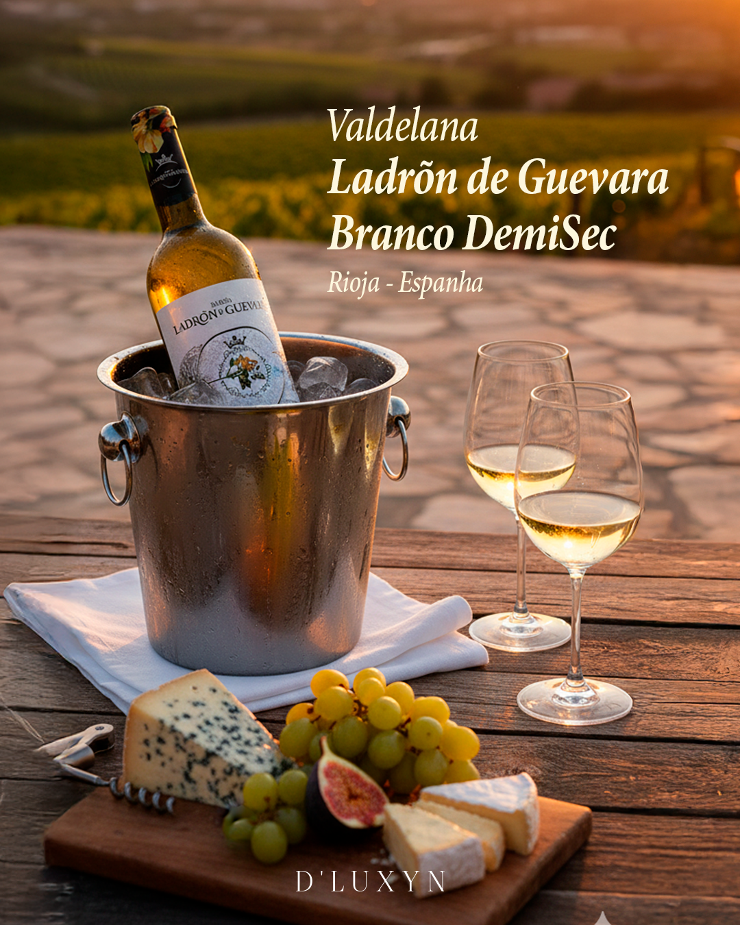 Um vinho branco espanhol de Rioja, feito deMalvasiaeViura, com notas de frutas em calda (pêssego, pera), frutas brancas e flor de amêndoa, oferecendo doçura natural equilibrada por boa acidez e final de boca persistente